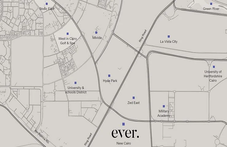 - يبعد ايفر القاهرة الجديدة دقائق قليلة عن الطريق الدائري الأوسطي.